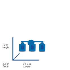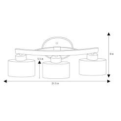 - Fixture measures 21.5-in W x 9-in H x 5.5-in D, backplate measures 7.5-in W x 5.5-in H
