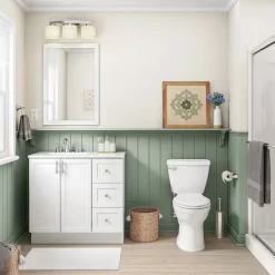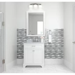 - This vanity light from the Merington collection boasts hand painted white shades showcasing an updated modern look for your bathroom