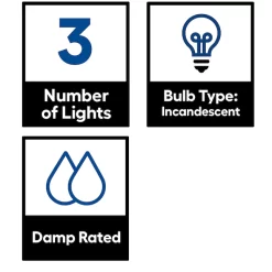 - Requires 3 medium base light bulbs, maximum wattage of 60 (not included)