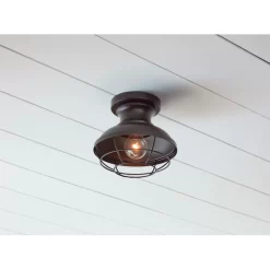 This Allen and Roth bronze cage design ceiling fixture from the Yordan collection will add a vintage industrial feel for any room.