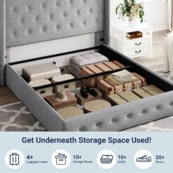 - Space-Saving Storage: With its lifting up storage feature, this bed frame provides ample space to store extra bedding, clothing, shoes, and other items, especially helpful for smaller bedrooms or apartments where storage space is limited