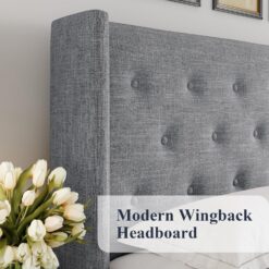 - Elegant Headboard: High wingback headboard adds elegant aesthetics to your bedroom. Button tufted headboard shows classic fashion