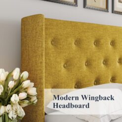 - Elegant Headboard: High wingback headboard adds elegant aesthetics to your bedroom. Button tufted headboard shows classic fashion