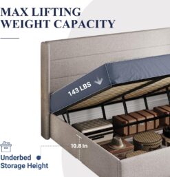 - Space-Saving Storage: With its lifting up storage feature, this bed frame provides ample space to store extra bedding, clothing, shoes, and other items, especially helpful for smaller bedrooms or apartments where storage space is limited