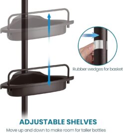 - 【 Fit Most Showers-Not for drop or slope ceiling】- The package comes with adjustable pole for you to adjust the height, no need to bother you to cut the rod, you can place this shower caddy on any height as described within 39.2 to 113 inch. With this shower shelf organizer, you always have all of your bathroom accessories right within easy reach when you’re in the shower in any bathroom!