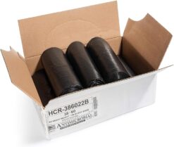 Aluf Plastics High Density Trash Bags, 60 Gallon, 150 Count, 22 Micron (eq), 38″ x 60″, Black, for Bathroom, Office, Industrial, Commercial, Janitorial, Municipal, Recycling