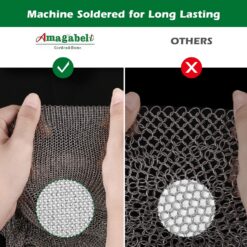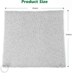 Amagabeli 10”x10” Cast Iron Cleaner Mesh Premium 316 Stainless Steel Small Rings with 3.8mm Opening Chainmail Scrubber for Cast Iron Pans Pre-Seasoned Pan Dutch Oven Waffle Iron Pans Skillet Cleaner. The machine soldered small ring and without any slit, it will have long last as your cast iron pans do. You don’t need throwing money down the drain buying new sponges every week,Chainmail will meet all your cleaning needs.