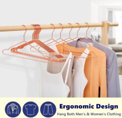 - 【Ergonomic Design】Extremely and rich looking hangers decorate your precious garments in wardrobe. The bottom of hanger is perfect for hanging jeans, trousers and slacks. One hanger can organize your pant and shirt coat.