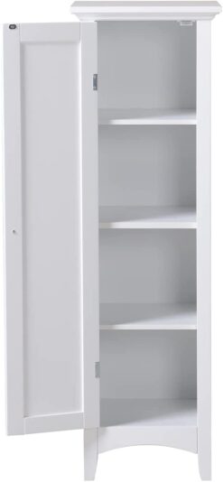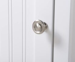 Add extra storage to your kitchen with the OS home and office model 25501 white one door pantry. The classic painted raised panel door hides 3 adjustable and removable shelves. The brushed aluminum finished pull adds just the right flair.