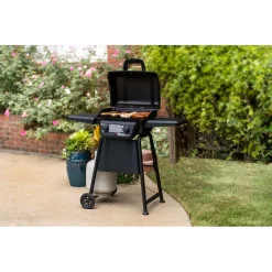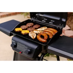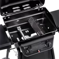The American Gourmet 2-Burner Gas Grill is perfect for small spaces and cookouts. It features 20,000 BTUs of cooking power across 280 square inches of cooking space. Equipped with in-line stainless steel burners for even heat, a Piezo ignition for easy starts and it’s equipped with two metal side shelves for extra space.