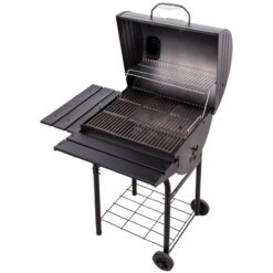 The 625 Charcoal Grill features 625-square-inches of total cooking space for a traditional charcoal grilling experience. This grill has heavy-duty cast iron grates and a height-adjustable charcoal tray that delivers four levels of heat control for high-heat searing and slow cooking at lower temperatures. Front and side shelves give you all the space you need for prep work and cooking tools. The 625 Charcoal Grill can also be converted into an offset smoker using the American Gourmet® Charcoal Tabletop Grill (sold separately) as a firebox.