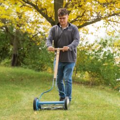 American Lawn Mower Company 16-Inch 5-Blade Old-School Push Reel Lawn Mower is a green alternative to gas-powered lawnmowers. Moreover, this classic lawn mower is easy to use and does not emit fumes. It can cut your lawn in a precise scissor-like motion that will not shred your grass to make your lawn appear better. This vintage reel lawn mower has a low maintenance hassle-free design that only requires to be sharpened at least once every 3-5 years. Perfect for youths over the age of 13 and compact yards. When you buy it, you won’t have to worry about fuel, maintenance, and repairs that make this push blade mower a smart choice.