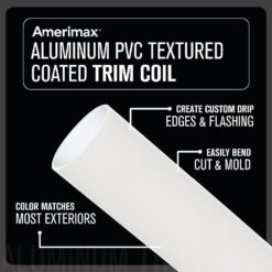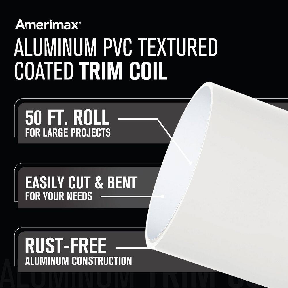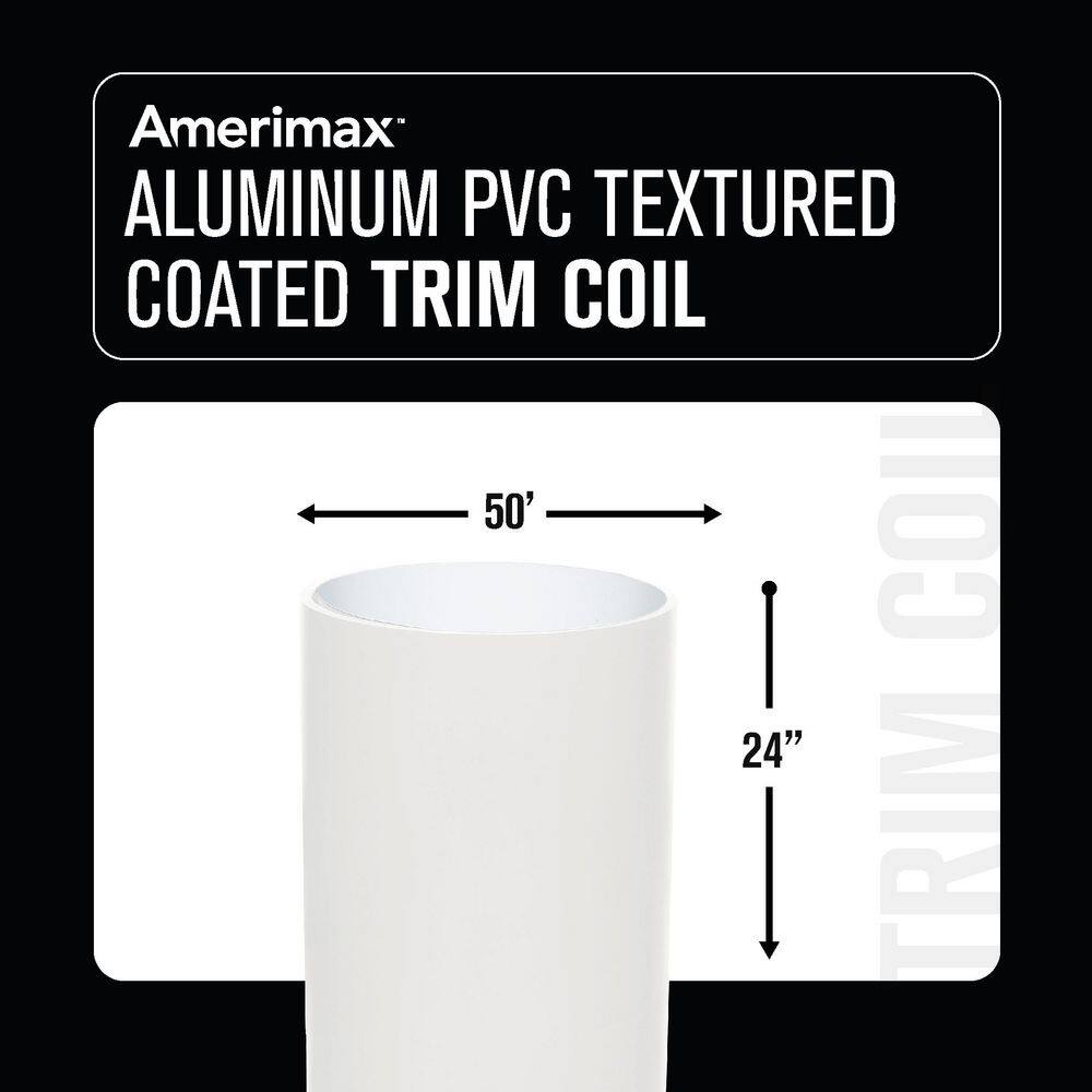 Bedeck a window, door trim, fascia, crafts and hobbies and other household projects with a touch of style using this Amerimax Home Products 24 in. x 50 ft. Bright White Aluminum PVC Textured Coated Trim Coil. The trim coil installs easily using a hand brake tool (not included.) The trim coil has a baked-on finish for low maintenance and rust-free aluminum construction for durability. It can be bent and formed into drip edges and used around dormers and skylights as well. Also known as coil stock. Its textured coating is used wherever you need a wood-grain look to finish the exterior of your home.