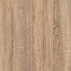- The TV Stand supports up to a 65” flat panel TV with a maximum weight of 120 lbs. and is constructed of laminated particleboard and MDF with a light brown woodgrain finish