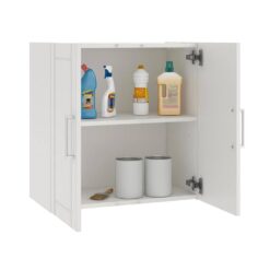 - 2-shelves, 1-adjustable, behind the 2-doors provides optimal storage for cleaning supplies, office supplies, or crafting tools, EZ hang system gives you a level and sturdy hang on the first try