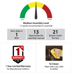 Step away from the ordinary and give your living room a modern makeover with the Ameriwood Home Lumina Deluxe Fireplace TV Stand. Don’t let the simple look fool you, this stand comes with a 23” electric fireplace insert with all the bells and whistles. Ready to warm up a 400 square foot room with the touch of a button, you can relax knowing that timers will take care of the rest. If you want to simply enjoy the look of the flames without the heat use the included remote to switch off the heat option and pick your flame brightness. The fun doesn’t stop there though. On either side of the fireplace insert are three shelves, 2 glass, that hold your entertainment components like gaming systems, a DVD player, remotes and more. Both of the side shelves are ilFendallted with LED lights with 7 different color settings to coordinate with the glowing fireplace. This Fireplace TV Stand has a mix of navy laminated particleboard, MDF and hollow core construction with metal feet and tempered glass shelving. Combined together this stand makes for a very sturdy addition to your room. The top can hold up to a 70” flat paneled TV with a maximum weight of 120 lbs. Two adults are recommended to assemble this Fireplace TV Stand. After assembly, the stand measures to be 24.875”H x 64.75”W x 18.875”D.