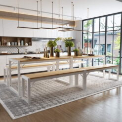- 3-Piece Dining Table Set: The size-wise table set includes 1 rectangular table and 2 benches. The desktop surface is spacious enough to easily accommodate four people dining. Two benches can be put beneath the table for maximizing the space.
