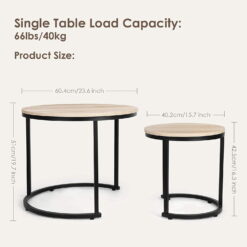 ☕ STRONG STRUCTURE – Assembled from solid chipboard and steel legs for more stability and durability. The large table can support 99lbs (45kg) and the small one can support 66lbs (40kg).