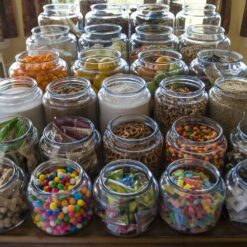 - DURABLE: These glass jars with matching lids are wide mouthed and thick walled to ease scooping, prevent spillage, and protect what you buy. When you’re finished, slide them right in the dishwasher for easy clean-up.