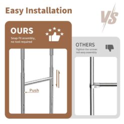 - Made of four adjustable metal tubes (42 in. L x 22 in. W x 68 in. H), it allows for side – height adjustment with three times more space than single – pole racks, it suits various clothing lengths