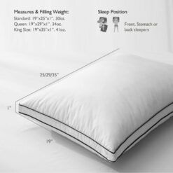 - ELEGANT DESIGN – Single pack or 2 pack pillow for choice. This King Size pillow insert 19*35*1 inches with filling of 41 oz down feather. Quilted with 1” gusseted and decorative black piped edges, this elegant pillow can matches your bed in any style.