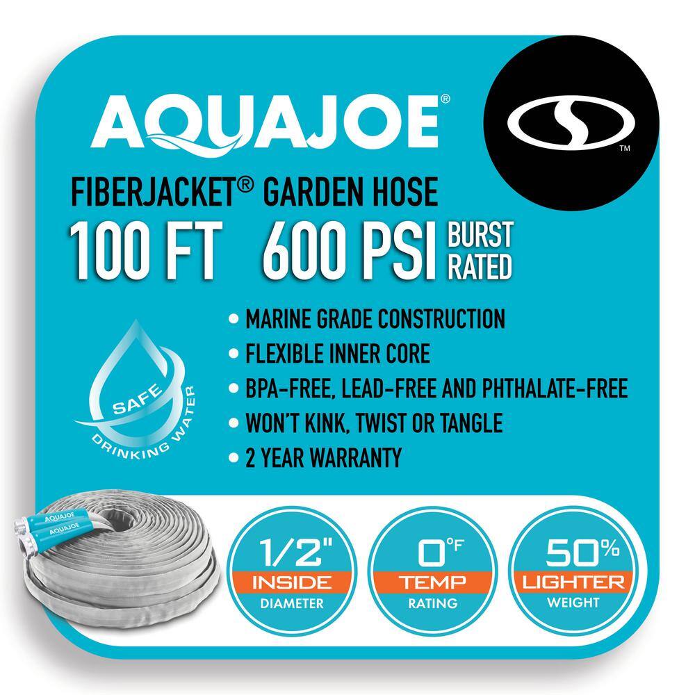 AQUA JOE AJFJH100-PRX 1/2 in. Dia. x 100 ft. Xtreme Fiber jacket Garden Hose, Metal Fittings