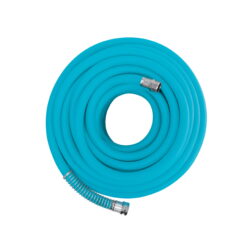 DRINKING WATER SAFE Water your lawn with uninterrupted flow with the AJPGH50-DWS Hybrid Polymer Garden Hose from Aqua Joe. Constructed from a rugged, high-density, flexible hybrid-polymer material for maximum durability performance, Aqua Joe won’t twist, kink or tangle. Lightweight and easy to maneuver around trees, corners, plants, and other obstacles, you can water your yard garden without having to stop and straighten the hose. Equipped with solid, male female aluminium connectors, Aqua Joe provides a secure, leak-proof connection. The coiled spring bend restrictor provides unrestricted flow without the worry of twisting at the spigot. And the sturdy hybrid-polymer material is crush-proof, abrasion-resistant, and drinking water safe. So, give your lawn a cool drink of water and take a sip for yourself with the AJPGH50-DWS 50-ft Hybrid Polymer Garden Hose from Aqua Joe.