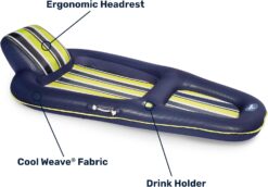 - Luxury Pool Lounger: Built with a comfortable, ergonomic headrest and cushioned backrest.Inflated size: 70 x 36 inches; weight capacity: up to 250 pounds; packaging may vary