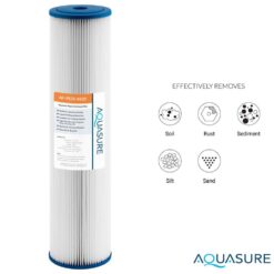 AQUASURE Fortitude V Series Dual Cartridge Sediment/Carbon whole house water filter system is designed to effectively removes both sediment and chlorine in the water throughout the entire house. The dual stage design and 1st stage see-through housing allow filters to be changed individually depending on the condition of sources water. AQUASURE provides a wide variety of water filters that cater to your specific water needs. Our Fortitude series of whole house water filter with the dedicated pleated sediment and carbon block water filter help reduce chlorine, taste, odor, chemical, sand, rust and dirt, with a very low-pressure drop.
