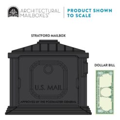 Be transported back in time with the Stratford Mailbox and Post Combo’s ornate appearance. The elegant round post incorporates detailed fluting and stylish finial, combined with the post’s mounting bracket support that includes a decorative scroll, are sure to please any palette. The medium-sized mailbox has a decorative top panel with embossed side panels and round door pull knob for easy access to mail. The Stratford is manufactured from a rust-proof polycarbonate black plastic with an ultraviolet inhibitor for long life. Its sturdy base is designed to slide over a 4×4 post (not included).