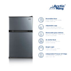 - Arctic King 3.2 Cu Ft Two Door Mini Fridge with Freezer, Stainless Steel:
