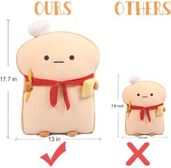ARELUX 17.7” Funny Toast Sliced Bread Pillow,Bread Shape Plush Hugging Pillow with Red Scarf,Soft Toast Food Sofa Cushion for Home Decor,Plush Toy Gifts for Kids Birthday(Large Size)
