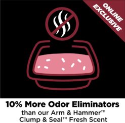 ABSORBS, SEALS, AND DESTROYS ODORS ON CONTACT with 10% more odor eliminators than our regular ARM & HAMMER Clump & Seal Fresh Scent cat litter. This complete odor-sealing clumping cat litter delivers odor control with powerful odor eliminators plus ARM & HAMMER Baking Soda.