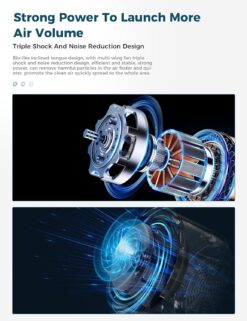 - Boosted Power for Greater Air Flow: With a bio-inspired inclined tongue design and a triple shock and noise reduction multi-wing fan, this air purifier boasts strong and efficient power to quickly and quietly reduce harmful particles from the air, promoting clean air to rapidly spread throughout the whole area.