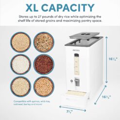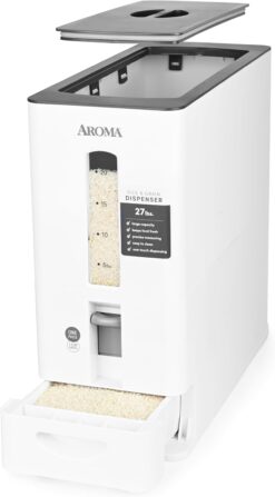 - HUGE CAPACITY: Aroma’s rice dispensers are upgraded with even more storage and space-saving features; Now you can pour 27 pounds of rice or dried grains inside!