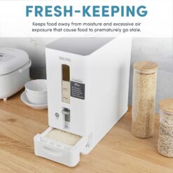 - AIRTIGHT SEAL: Keep grains fresh for even longer; The sleek white dispenser is fitted with a sealed lid and dispenser drawer that keep moisture and stale air out.