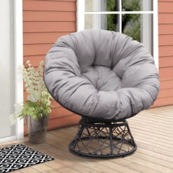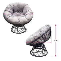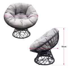 - 2. 360 Degree Swivel : The rattan swivel papasan chair is equipped with a special base which allows 360 degrees rotation. And the stable chassis offers this round chair good bearing performance which is up to 350lbs and ensures you to enjoy leisure time safely and comfortably.