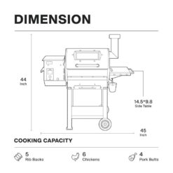 - Premium build quality: high-quality materials and detailed designs with a large cooking capacity that’s ideal for a large 3-12 group party, 484 sq. in. main rack plus 216 sq. in. insulation rack, totaling 700 sq. in. comes with a 2-in-1 stainless steel side shelf, whopping 25.8 lbs. hopper capacity ideal for continuous smoking