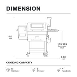 - Large cooking area and hopper capacity, 484 sq. in. main rack plus 216 sq. in. insulation rack, totaling 700 sq. in. comes with a 2-in-1 stainless steel side shelf, ideal for a large 3 to 12 group party, whopping 25.8 lbs. hopper capacity ideal for continuous smoking