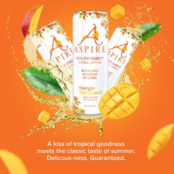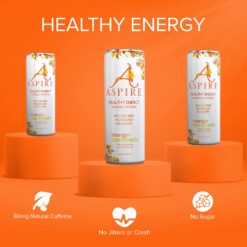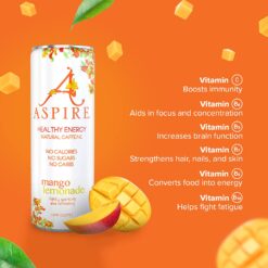 Aspire Healthy Energy Drink, Mango Lemonade (Pack of 12) 12 oz Cans, Natural Caffeine and Zero Sugar, Coffee Substitute, Vitamins B & C, Keto, Vegan, and Kosher Friendly