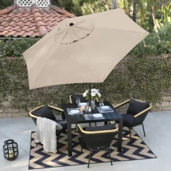 Astella 9-ft Solid Push-Button Tilt Market Patio Umbrella, Antique Beige