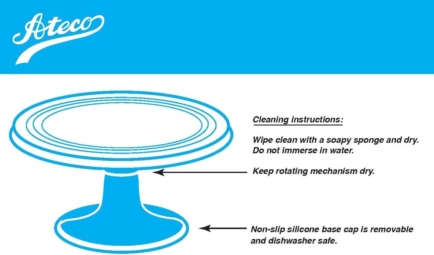The #615 Round revolving cake stand, by Ateco, is the perfect tool to use when decorating cakes. This aluminum stand features stainless steel ball bearings which provide a smooth rotation for better, more accurate results. Revolving cake decorating stand. The turntable measures 12-Inch diameter and it stands 4-inches high. To clean, wipe with damp cloth and do not submerge in water when cleaning. At Ateco, four generations of the August Thompson family have provided quality baking and decorating tools to professional pastry chefs and discerning home bakers for over 100 years.