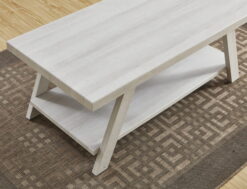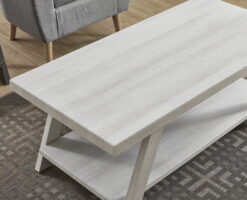 The Athens Contemporary Wood Shelf Coffee Table provides your room with a lodge-style feel that’s at once stunning and welcoming. The compact frame of this table is built from high-quality manufactured wood with wide-angled legs in your choice of finish. The bottom shelf is perfect for storing magazines and newspapers, or displaying your favorite collectibles. Inspired by sawhorses and the simplicity of some craftsman-era tables, this coffee table fits with rustic or contemporary styles.