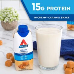 Stay satisfied with the deliciously rich taste of the Atkins Creamy caramel energy shake. Enjoy steady energy and the benefits of 15g of protein, 2g Net Carbs and 1g of sugar per shake.