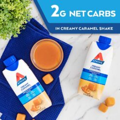 Stay on track. Stay true to the Atkins Diet and Lifestyle with our delicious Shakes. This creamy caramel energy shake has 2 grams of net Carbs and 1 gram of sugar per serving.