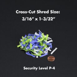 - Shreds paper, credit cards into small pieces (3/16 by 1-3/32 inches), security level P-4
