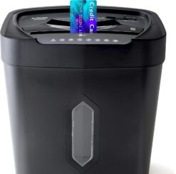 The Aurora AU1220XA 12-Sheet crosscut paper/ credit card shredder with 5.2-Gallon wastebasket is the perfect business and home office device to keep you safe from identity theft. The AU1220XA accepts up to 12 sheets of paper at a time and shreds them into small pieces (3/16 by 1-3/32 inches), security level P-4. In addition to paper, the AU1220XA shreds credit cards, keeping vital information from falling into the wrong hands. The throat of the shredder is 8.7 inches wide and allows continuous shredding for 3 minutes. The Item includes an integrated handle for easy emptying of the 5.2-Gallon wastebasket. Product Dimensions: 13.31″ W x 8.46″ L x 15.87″ H