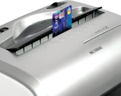 Aurora’s AU1217XB professional medium duty crosscut shredder is designed for moderate use around the home or home office. Durable, compact design ideal for shredding 25-50 times per day and up to 12 sheets of 20 lb. bond paper at a time. Featuring the ShredSafe safety power control feature, status indicator lights, and angled feeding slots. The 31217 has a 3 position mode switch for Off, Auto-On and Reverse, and comes with a 4.0 gallon pull-out wastebasket.