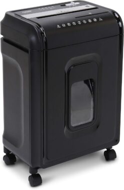 - Crosscut with 12 sheet capacities; destroys CDs, DVDs, credit cards and small paper clips.