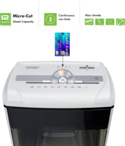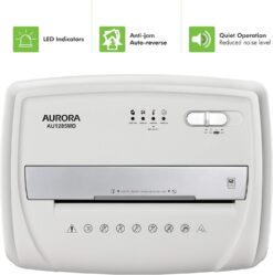 Aurora AU1285MD Compact Desktop-Style High Security 12-Sheet Micro-Cut Paper and CD/Credit Card/Junk Mail Pullout Basket Shredder, White/Black